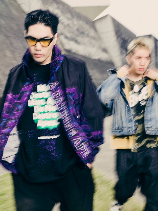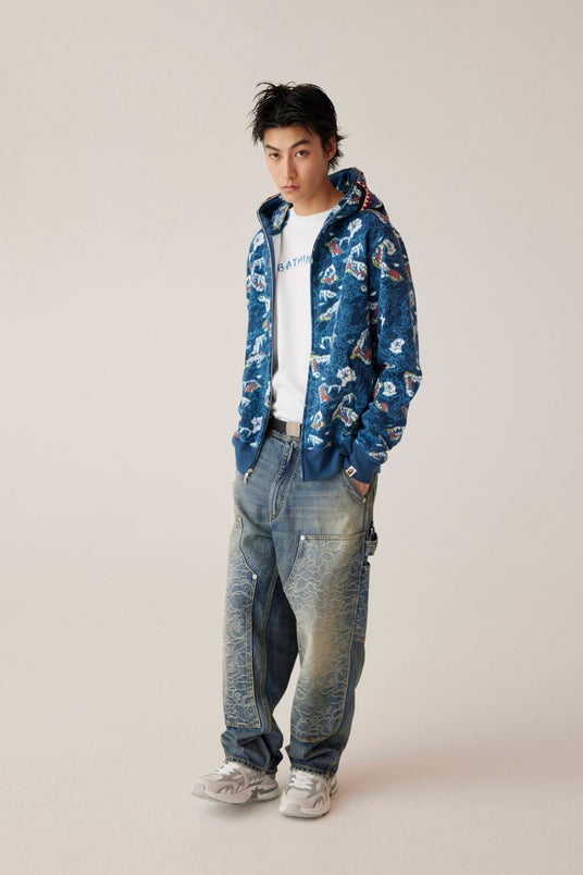 アイコニックな“シャークフーディー”やクラシックな“スノーボードジャケット”からオーバーサイズの“ガーメントダイスウェットパンツ”まで、大胆なカラートーンと丁寧なクラフツマンシップからBAPE(R)ならではのスタイルとインパクトを印象付けます。
