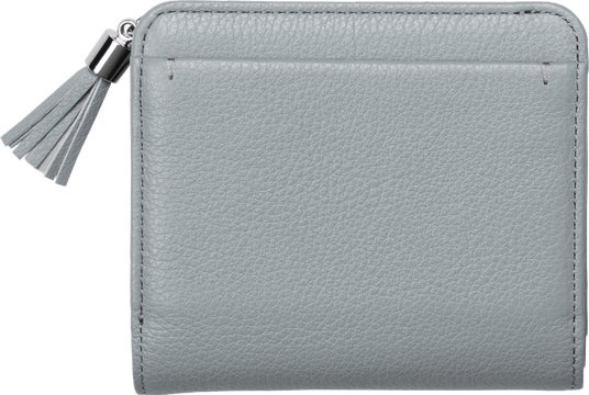 ブルーイッシュグレーは青みを含んだフェアリーなグレーで、柔らかく軽やかな雰囲気の色です。内装生地はあたたかみのあるグレー色を採用し、全体的にシックで落ち着いた印象にまとめました。ステッチは淡いグレー色で、外装革の繊細な色味を引き立てています。