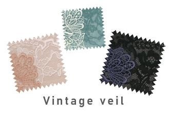 軽やかな中に、ほんのり感じる秋のムード。まるでヨーロッパの洗練されたサロンの装飾ような繊細な編みレースと、透明感のあるチュールをべールのように重ねたレイヤーが美しいシリーズが登場です。カップには、左右で異なるデザインのヴィンテージレース調のアップリケをあしらって。ロマンティックなムードたっぷりのデザインに仕上げました。