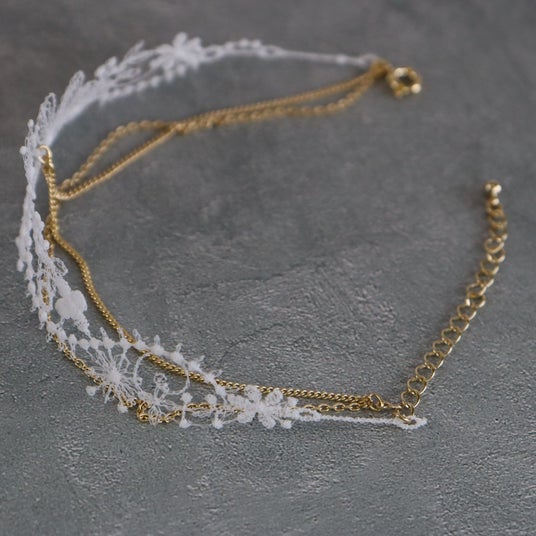 繊細なレースと2種類のチェーンを組み合わせたブレスレット