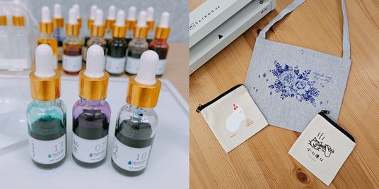 インク沼にはたまらないKA-KU大阪のオリジナルインクづくりや、理想科学工業によるPinkoiデザイナーとコラボしたスクリーンプリント体験。台湾の伝統工芸とけ合わせたオリジナルノート製本体験や漫画風似顔絵など、海外デザイナーと交流しながら楽しめるワークショップも盛りだくさんです。