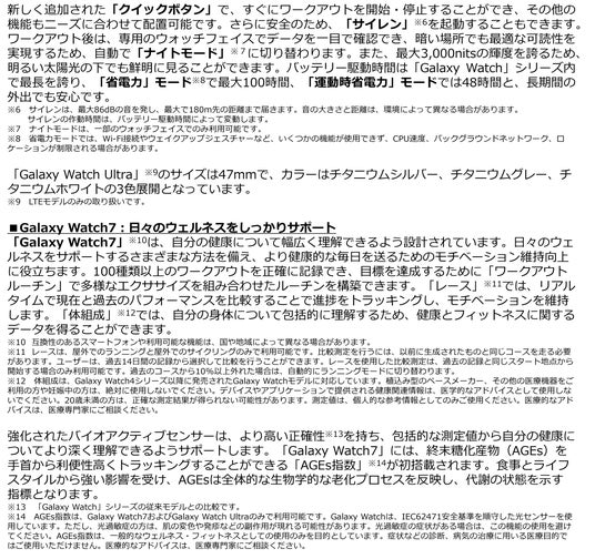 <主な仕様>:「Galaxy Watch Ultra」「Galaxy Watch7」