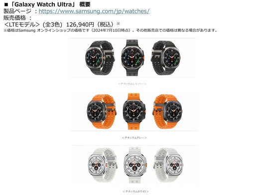 「Galaxy Watch Ultra」「Galaxy Watch7」純正・専用アクセサリー詳細