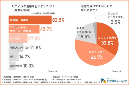 NLC野中腰痛クリニック(所在地:大阪府大阪市東淀川区、医療法人蒼優会理事長:野中 康行)は、腰痛を病院で治療した経験がある30代~60代の男女を対象に「腰痛治療」に関する調査を実施しました。