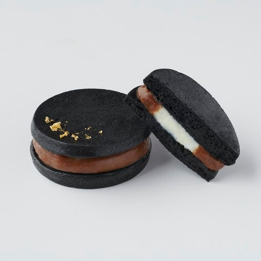 KURO 350円(税込)洗練された美しさを表現したKURO。奥ゆかしさを想像させるような生地でほろ苦いキャラメルクリームを上品に挟み、芳しい一品となっています。