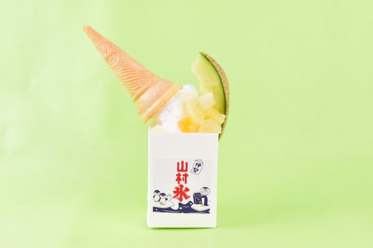 山村氷は、「お店の味をワンコインで」をコンセプトに開発した弊店初のかき氷メニューです。濃厚な練乳がたっぷりかかったふわふわで口どけの良い氷の上には、大人気の山村ソフトクリームとダイスカットされた白桃、パイナップル、みかんがトッピングされています。また、氷の中には山村ソフトクリームとつぶ餡を挟み、底にもフルーツを敷き、飽きがこない味わいになるよう工夫しました。