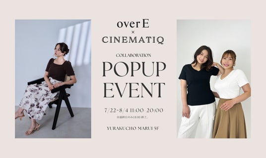 「女性がお洋服に抱える悩みを解決できる商品」を展開しているアパレルブランド『CINEMATIQ』は、「胸を張って生きていく、運命の一枚を」をコンセプトに商品を展開しているアパレルブランド『overE』とコラボPOPUPイベントを2024年7月22日(月)~ 2024年8月4日(日)まで有楽町マルイにて開催いたします。