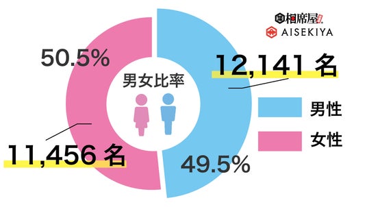 2024年6月の相席屋への男性来店数は11,456人、女性来店数は12,141人を突破。男性48.5%、女性51.5%でした。また、男性来店数のうち初めて来店した男性は3,809人、2回以上来店した男性は7,647人、女性来店数のうち初めて来店した女性は3,966人、2回以上来店した女性は8,175人でした。