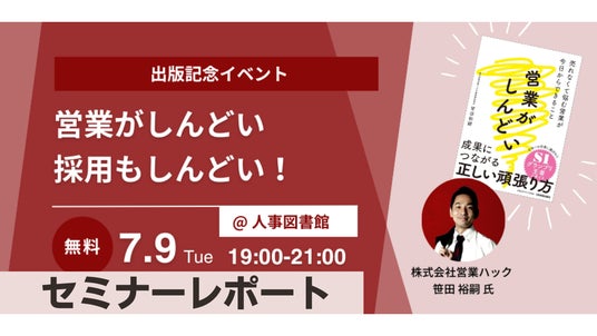 そこで今回は「営業がしんどい」著者であり、S1グランプリで優勝経験のある株式会社営業ハックの笹田から、成果をあげ続ける営業の仕事と採用の仕事を巡ってお話をさせていただきます。「どうしたら手ごたえを感じられるのか」「今よりも安定的に成果を出すためには」など様々な業務に応用可能かつ仕事の充実感を感じられる働き方のヒントが見つかるはずです。