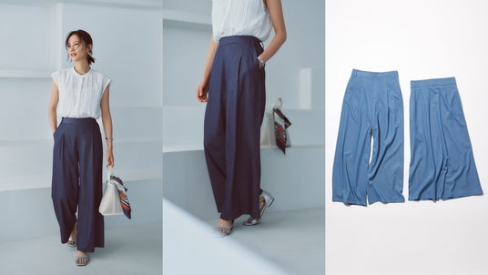 今回は、暑すぎる日本の夏の猛暑対策として、「接触冷感機能」を備えた、着ている方が涼しく心地よい2シリーズの販売をスタートしました。<サラサラサマーシリーズ>は、肌触りがひんやりと心地良い「接触冷感機能」と、その名の通りサラサラな着心地が続く速乾性のある素材を採用。昨年大好評だったジョーゼット素材やリネンライク素材に加え、より上品見えにこだわってアップデートしたデニム見え素材や、ドライタッチな表情が魅力のサマーウールライク素材も登場。こだわりの4素材から必ず欲しいアイテムが見つかるような提案をします。