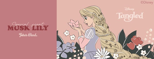 ラプンツェルの美しい髪からふわりと香ってくるようなフローラルな華やかさと清潔感をイメージした「MUSK LILY(ムスクリリー)」の香りは、『塔の上のラプンツェル』の劇中に登場する「光る魔法の花」をイメージしたオリジナルフレグランスです。