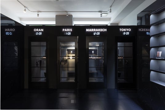 動画で体感いただけるブースを設置。製品をご覧いただきながら、YSLのストーリーと世界観を堪能いただけます。ORAN、TOKYO、MARRAKECH、そしてPARIS。ブースには各都市のデジタルクロックも設置され、動画のスタートとともに、ムッシュイヴ・サンローランの眼差しを通して語られる
