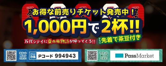 プレイガイド:1000円で2杯+枝豆付き(先着順)お得な前売りチケット発売中!