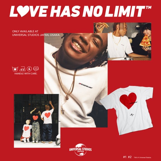 ユニバーサル・スタジオ・ジャパンは、2024年4月にCSRスローガン「LOVE HAS NO LIMIT」を発表しました。8月10日(土)より、ハート型のロゴが目を引く「LOVE HAS NO LIMIT チャリティTシャツ」を発売し、その売上げの一部を寄付に充てるゲスト参加型のチャリティ・プロジェクトを始動します。ハートロゴのベーシックなデザイン(右記)に加えて、クッキーモンスターのカラーを生かしたセサミストリートデザインやスヌーピーの原画を使用したピーナッツデザインもラインナップします。また、多様な着こなしを提案するルックブックも公開予定。