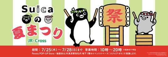 「JR-Cross」)は、昨年ご好評をいただいた「Suicaの夏まつり」イベントを今年も開催いたします。Suicaのペンギングッズの先行販売を多く取り揃えた「Pensta POP-UP Store」や、Suicaでお買いものをすると参加できる「Suicaで大抽選会」、Suicaのペンギンと一緒に写真撮影ができる「Suicaのペンギン撮影会」など、夏の思い出づくりにぴったりな企画を実施します。