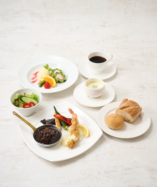 自慢のデミグラスソースを使用した牛ほほ肉のシチューと、エビフライをメインディッシュにした人気のミニコースを、『Suicaの夏まつり』に合わせてアップグレード。夏野菜の和風マリネや冷たいスープ、スイカ味のロールケーキをお楽しみください。