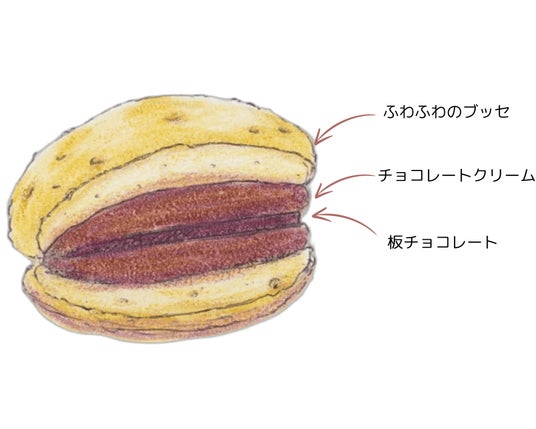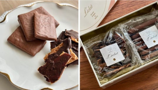 「ショコラブティック レクラ」では今回のリニューアルオープンを記念して、ふわふわのブッセにチョコレートクリームと板チョコレートを挟んだ、食感も楽しい「フロッコン」(1個324円、4個入り1,296円)と、クッキーショコラとフロランタンをレクラオリジナルの缶に詰め合わせた「パポテ」(1,296円)を販売します。
