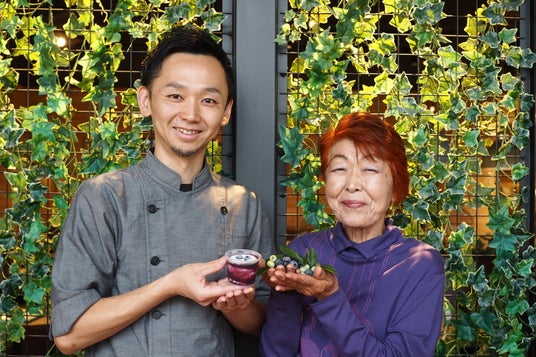 写真左より、ジェラートマリノ代表 池田順也さま、ファームFUMI代表 高橋文子さま