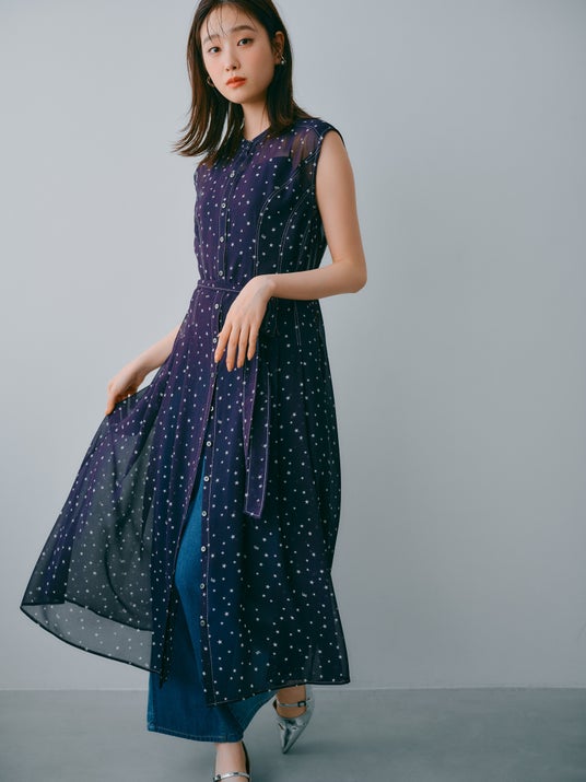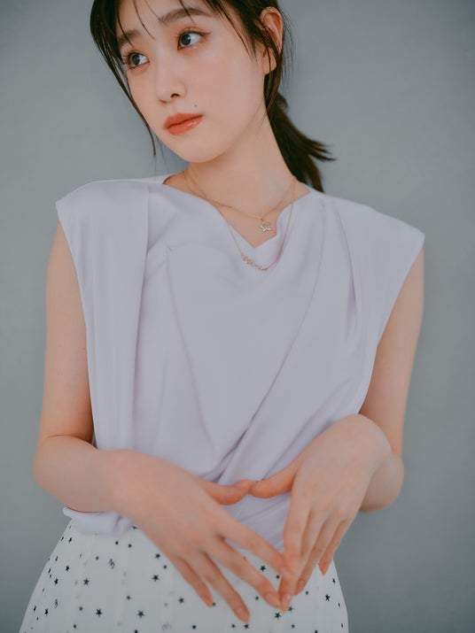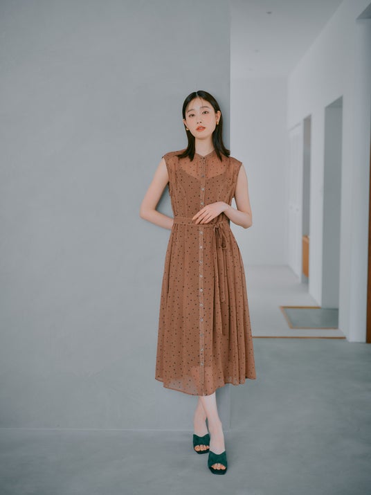 シアーな素材だからこそ、アンダードレスのネックラインも意識。