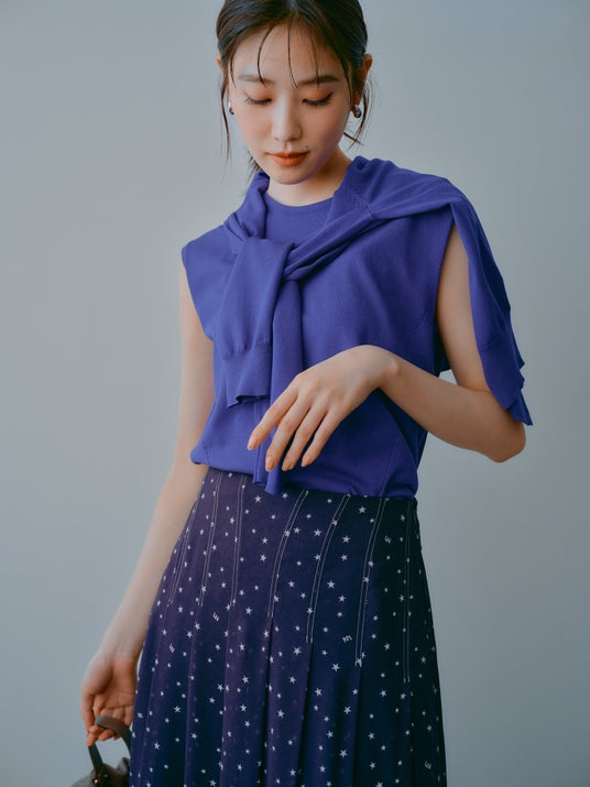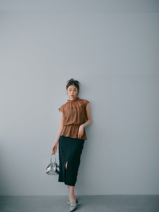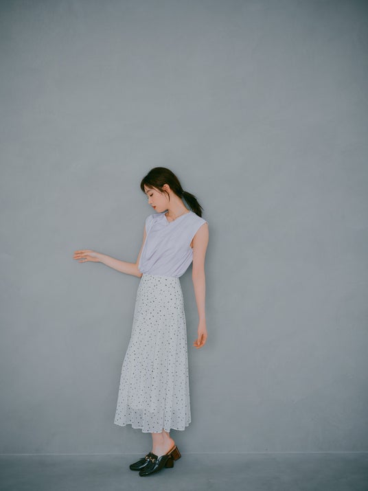 スカートは刺繍のアクセントで、ウエスト部分をスッキリ見せる効果が。