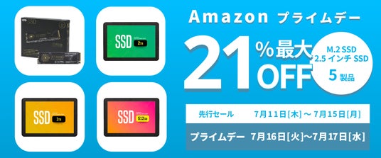 2024年7月16日(火)0:00から7月17日(水)23:59まで合計48時間にわたってAazonで開催される「プライムデー」と、7月11日(木)から開催される「プライムデー先行セール」において、CFD販売のSSDが最大21%OFFとなる特別セールを実施します。