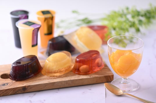 日本で人気の高い2種類のジェリー。芳醇でフルーティな香りとともに、凝縮されたフルーツの美味しさをお楽しみいただける「フルートジェリー」と、国内産の熟した果肉を大ぶりにカットした「ピュアフルーツジェリー」です。