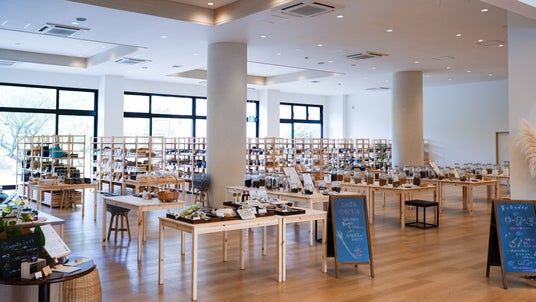 ドライフルーツやスパイスやナッツ等の量り売りやナチュラルな食材を取り揃えた食料品店 “marche acoustic”。こちらはラクトオボベジタリアンとなっています。