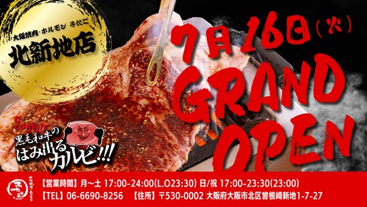 「大阪焼肉・ホルモン ふたご」を世界展開する株式会社FTG Company(本社:東京都目黒区、代表取締役社長:李 純哲)は、 大阪・北新地(JR北新地駅/徒歩4分)に国内外110店舗目となる「大阪焼肉・ホルモン ふたご 北新地店」を2024年7月16日(火)グランドオープンします。
