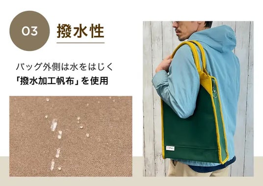 ドロップイントートバッグは大容量&ハイブリッド素材でPCを「するっ」と入れられる使い勝手を実現しました。