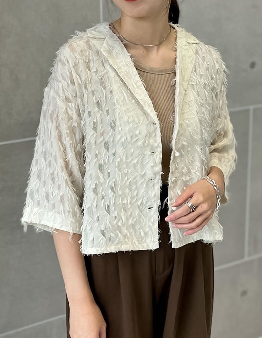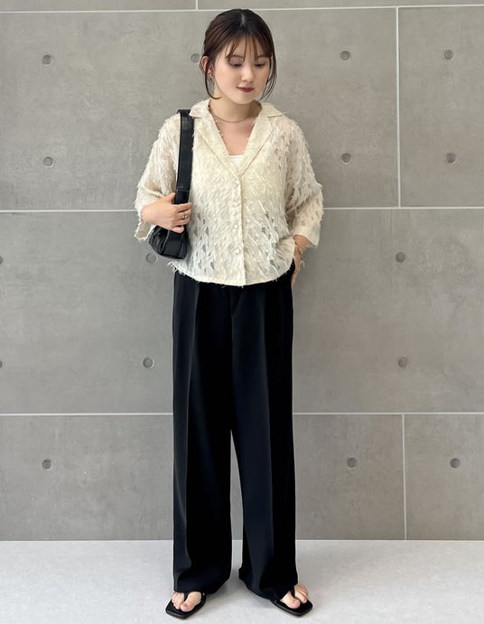 軽やかで、透け感のあるシアー素材が清涼感のあるスタイリングを演出。