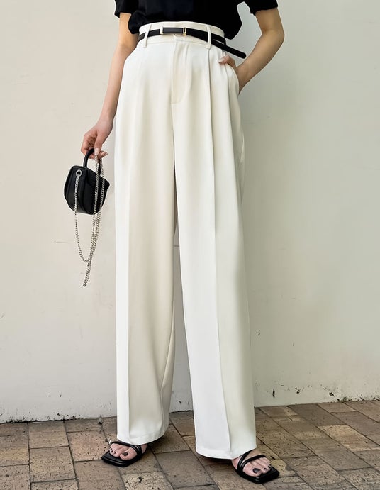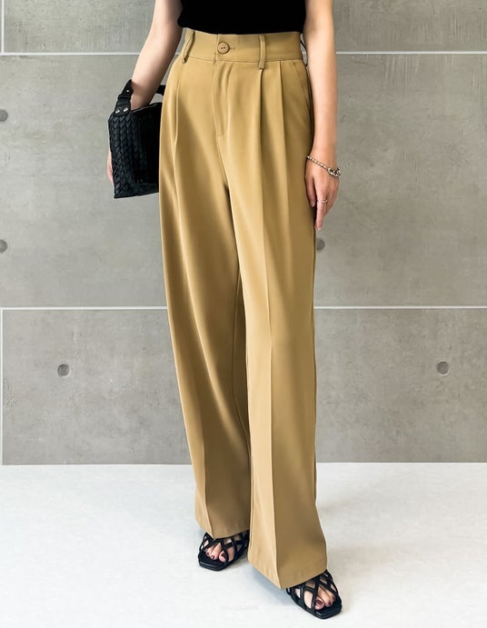 大人のきれいめスタイルに1本は持っておきたい、美脚見えワイドスラックス。