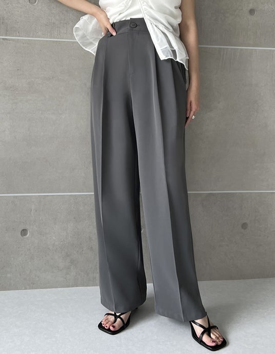 ハイウエストデザインかつ、長めの丈設定でスタイルアップ効果のあるワイドパンツ。