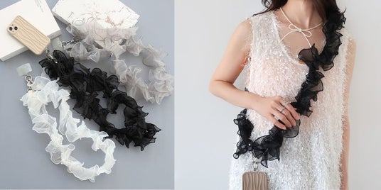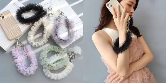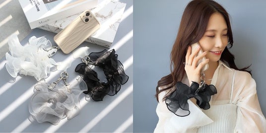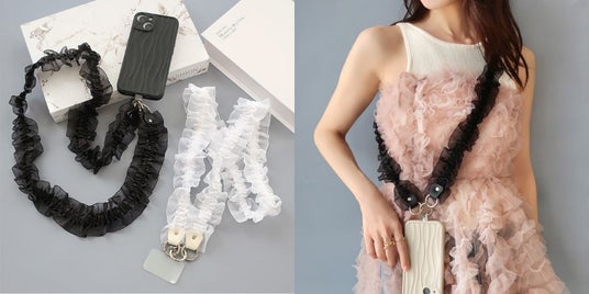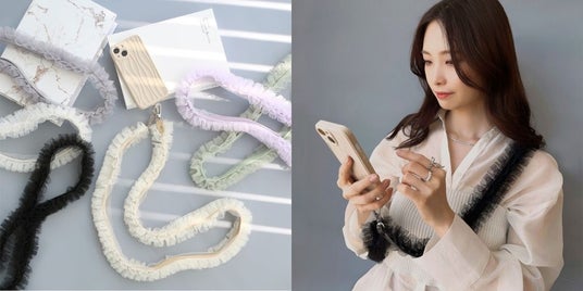 トレンドとして注目されているチュール素材のスマホストラップ。