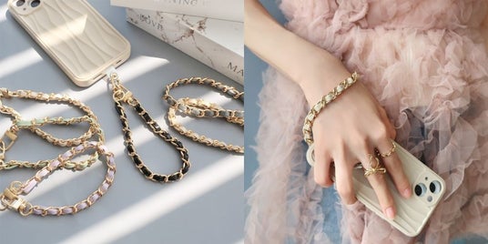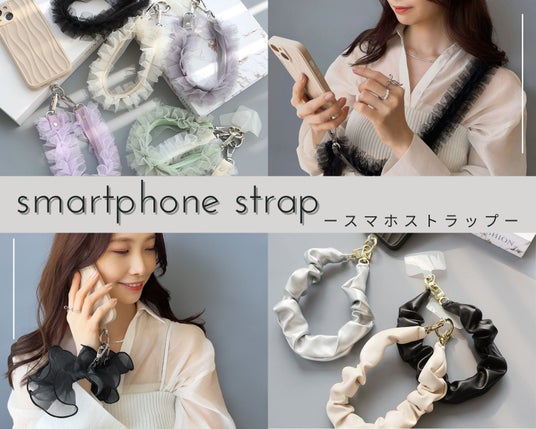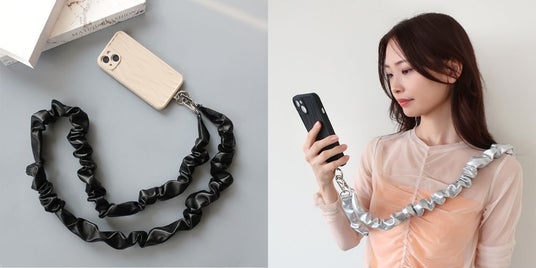 くしゅっとしたデザインやチェーンデザインのスマホストラップ。
