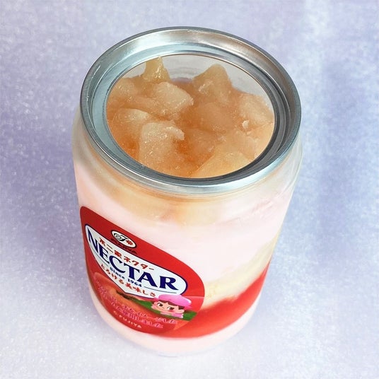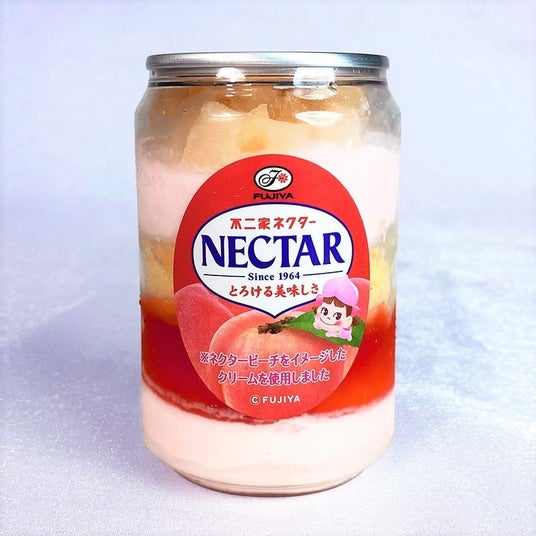 今年で60周年を迎えた不二家のロングセラー飲料「ネクターピーチ」をイメージしたクリームを使用したスイーツ缶です。