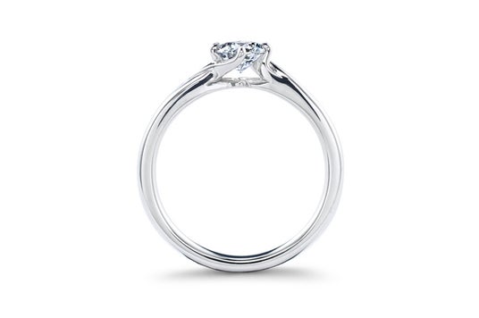 完璧に磨き上げられたダイヤモンドのキューレット(先端部分)までもが美しく輝く、高さを抑えたデザイン。滑らかなプラチナの艶やかな光で、よりダイヤモンドを麗しく写し出します。