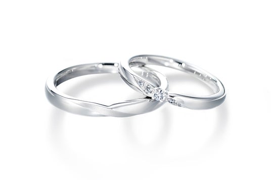 セットリング重ね着けした時に、エンゲージリングのセンターダイヤモンドから流れるように繋がるマリッジリングのメレダイヤモンドにより、ほどよく華やかで上品な指元へと仕上げます。