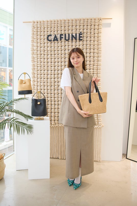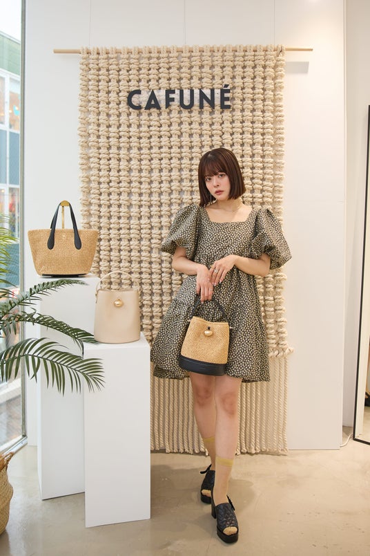 会場には、最新コレクションより、洗練された夏のバカンスにインスパイアされた高級天然素材ラフィアを使用した Summer Collection や、高級イタリア牛革で作り上げられた Egg Bucket Collection のほか、夏色バッグや定番コレクションを揃えています。Cafuneの涼しげで夏らしいバックの数々やその素材感を実際に手に取ってお楽しみいただけます。