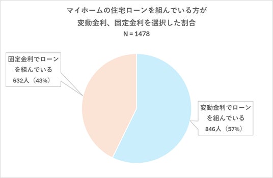 住宅ローンを組んでいる方のみで割合を出した場合は、およそ57%が変動金利を選択、43%が固定金利を選択していることになります。