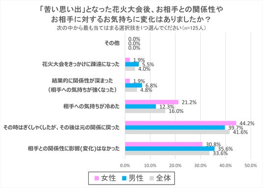 ■「苦い思い出」となった花火大会のあと、お相手との関係性やお相手に対する気持ちに変化はありましたか?次の中から最も当てはまる選択肢を1つ選んでください。