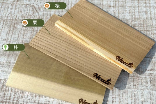 樹種によって、食材に移る木の香りは少しずつ異なります。それぞれの特徴は弊社で実施したアンケート調査をもとにまとめた「風味の評価」をご参考ください。商品は同一樹種の2枚セットのほか、食べ比べできる3種各1枚セットをご用意しています。