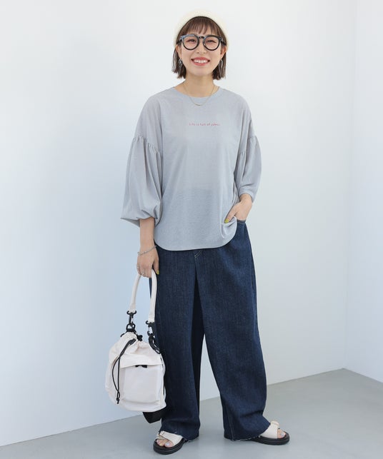 肌の露出は避けたいし、日焼けもしたくない、カーディガンやシャツが手放せない夏。来店されるお客さまやフォロワーさまからのお声をもとに、そんな悩みを一気に解決できる1枚を考案しました。控えめなシアー感のある素材を使い、長めの袖丈でも涼しげな印象になるよう袖にはボリュームを出しました。ロゴの配色はシンプルな着こなしのアクセントになります。