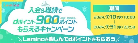 また、LeminoではLeminoプレミアムの入会と継続でdポイント900pt(期間・用途限定)をプレゼントするキャンペーンも実施中です。このチャンスをお見逃しなく。