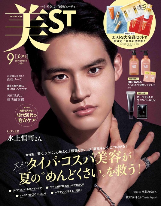 株式会社光文社(本社:東京都文京区、代表取締役社長・巴一寿)発行の女性月刊誌『美ST』2024年9月号では、水上恒司さんが美ST初表紙を飾ります。