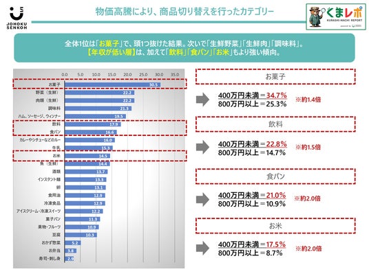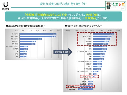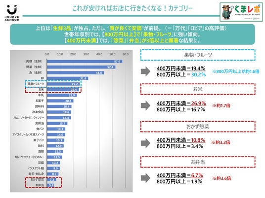 ・総合すると、「卵」「生鮮野菜」「お菓子」「冷凍食品」「調味料」に安さが求められている
