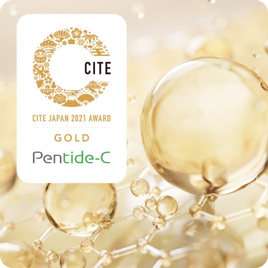 ビタミンCはコラーゲンを作るために欠かせない成分。栄養剤のような役割を持っています。コラーゲンはハリと弾力、ツヤを与えて肌を引き締めます。さらにペプチドと結合させることにより、安定した形でビタミンCの効果をしっかり届けることができます。浸透*3型ペプチドビタミンC*4は化粧品産業技術展CITE JAPAN 2021 技術部門で金賞を受賞している成分です。