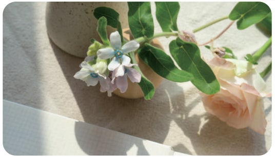 毎日のスキンケアがリラックスタイムになるよう、香りにもこだわりました。13種類の天然精油のみで彩り、ベルガモットやユーカリのさわやかな香りからはじまり、ラベンダーやニオイスミレのほっとする香りが締めくくります。朝には「今日もがんばろう」と気持ちを高め、夜には「お疲れ様」と癒すような、特別なマインドセットアロマになるよう調合しました。
