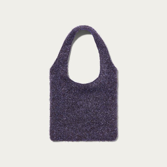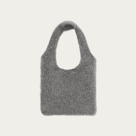 自由にアレンジをしやすいトライアングル型のストールはカラーを別注し、ニットバッグはユナイテッドアローズだけのオリジナルデザインです。裏地付きでニット部分が伸びる心配なく使用いただけます。きらきら×柔らかなニット素材の組み合わせがコーディネートのアクセントになります。
