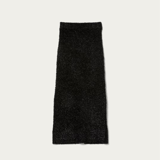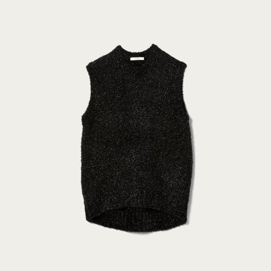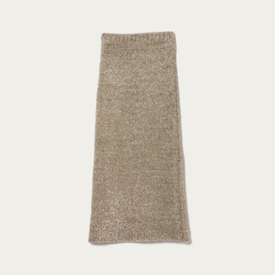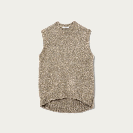 ブランドのシグネチャーともいえる後ろに丸みのあるシルエットのニットをアレンジしたベストです。トップスに合わせて新たにニットスカートをデザイン別注。セットでも着用でき、それぞれ大胆なラメ感ながらも合わせやすいアイテムです。