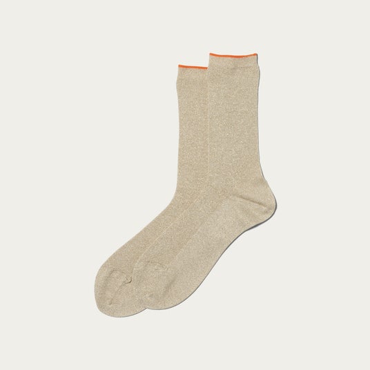 コーディネートのアクセントになるソックスをユナイテッドアローズだけの特別カラーで別注しました。履き口に、ゴールドはオレンジ、シルバーにはライムカラーを配色し、華やかな色味が足元を彩ってくれるソックス。ギフトにも嬉しい2足セットです。